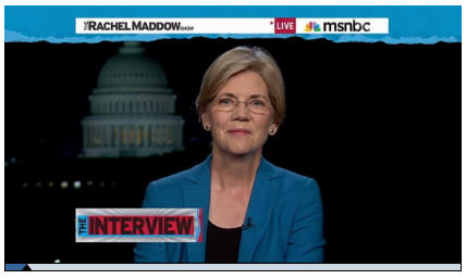 I preface with this because I’m providing you with a link to the Rachel Maddow interview with Elizabeth Warren. I had to go through a political website to find a snapshot version that cut out various segments that preceded…the interview with Ms. Warren.
