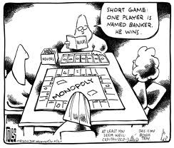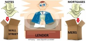 Visualize a banker sitting at this desk. On the left of the lender’s desk was a box marked MERS and on the right was a box marked WALL STREET. As the mortgage loan documents were signed the lender would throw the mortgage in the MERS box and the promissory note in the WALL STREET box – and his desk was clear. Nothing for the regulators to review. And when it came time for foreclosure, MERS would foreclose instead of the lender… MERS who had no beneficial interest in the loan. This was the “unregulated” derivatives game.