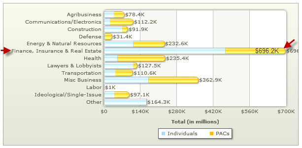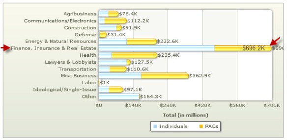 There’s a good reason why Eric Cantor is way out in right field fetching foul balls and making idiotic statements like calling the Wall Street protesters “mobs”. Take a look at Cantor’s campaign donations – and where the majority of his funds are generated. Mrs. Cantor is a Managing Director in a division of Emigrant Bank, a subsidiary of New York Private Bank & Trust Corp. (Strike two…)