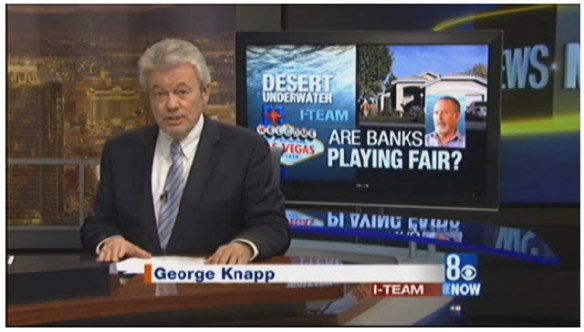 BRAVO! Landmark Media Enterprises LLC’s KLAS-TV 8 News NOW in Las Vegas, NV aired a compelling and informative BUYER BEWARE news story this week exposing the massive REO bank fraud found throughout Nevada, including the home of the very news anchor reporting the story. “If the house you bought was ever in foreclosure there’s a strong chance you have a problem,” said anchor George Knapp.
