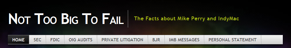 Putting the spotlight on former IndyMac CEO, Micheal Perry, who recently set-up a self-serving blog to try and achieve a sympathetic audience for the justification of the demise of