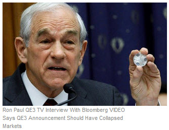fall short of the expectations many had — that the Fed would make asset purchases totaling upwards of $400 billion over the coming months — the open-ended nature of the Fed’s latest action makes it clear that more monetary stimulus is not only possible, but probable. Here’s Ron Paul interviewed on Bloomberg TV shortly after the announcement.”