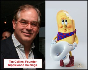 Sounds like a Bain Capital killing plan… its called Ripplewood Holdings. Ripplewood Holdings, Hostess’ existing equity owners, have little stake in the bankruptcy proceedings since their equity has become essentially worthless following the filing. But its likely golden parachutes launched well before the final filings.  This is what happens when hedge funds become the owners. Notice a resemblance?