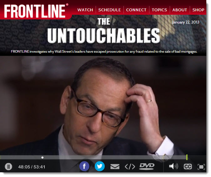 Frontline full storyWatching the PBS FRONTLINE | Untouchables left a lot of questions about the approach our U.S. government has taken to correct the securities corruption.