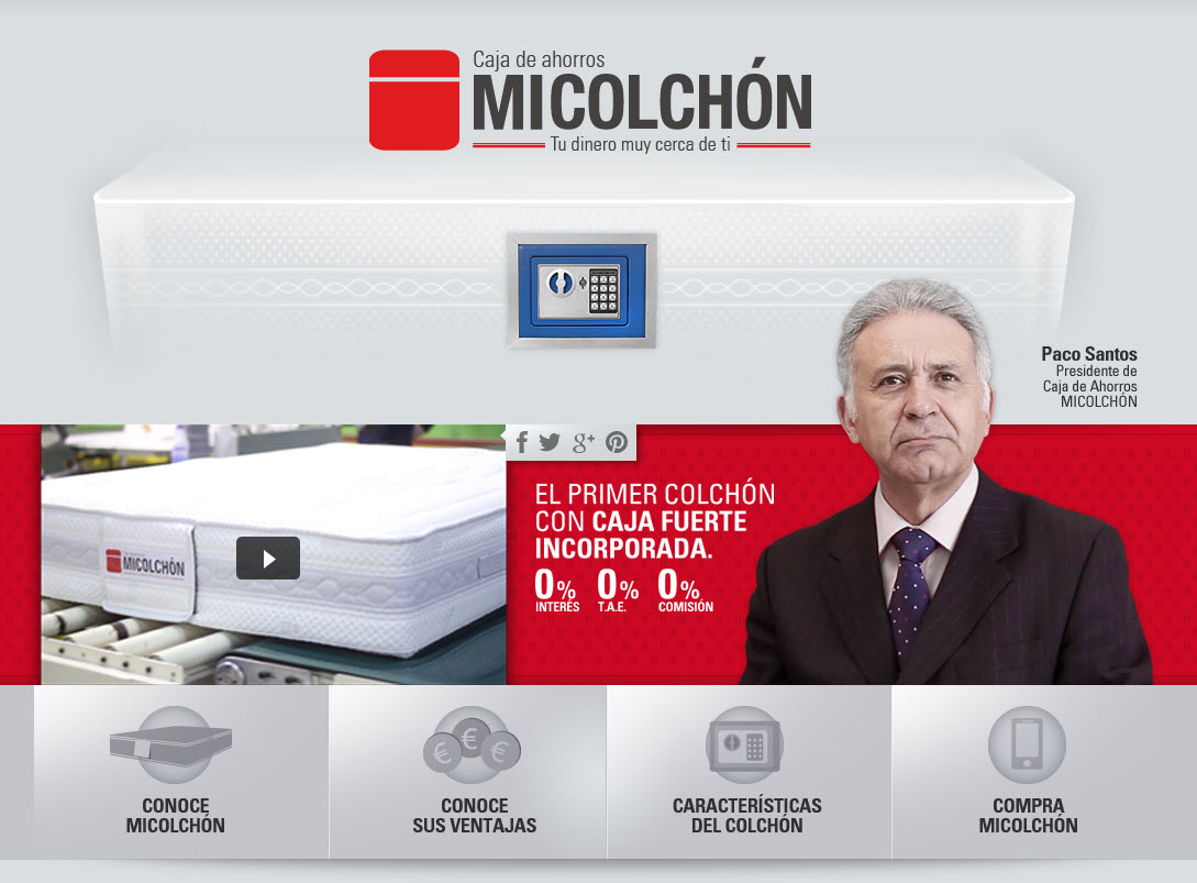 Step forward La Caja de Ahorros Mi Colchón, My Mattress Savings Bank, a novel Spanish business that provides you with a mattress that has a safe hidden inside the springs. A few months ago the company’s founder, Paco Santos, saw his bespoke mattress company [MICOLCHON] in the small western town of Santa Marta de Tormes heading the same way as many small businesses in a recession-plagued country with 26% unemployment. With scared consumers keeping purses tightly zipped, sales had dried up and companies were folding. “Sales in the slumber sector are down more than 50%,” he explains.