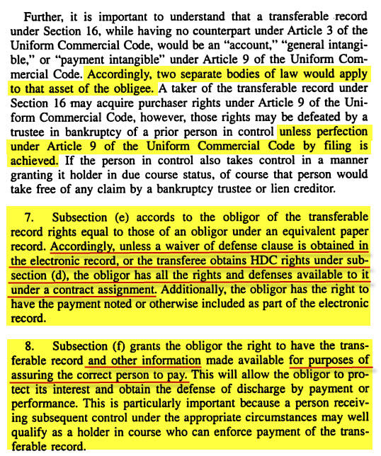 Maybe this is why all those original documents were being destroyed? As stated on page E-55: “the possibility that a paper note might be converted to an electronic record and then intentionally destroyed, and the effect of such an action, was not intended to be covered by Section 16.”