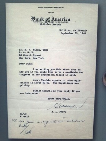 1. Obviously, we have the letter from H.L. Perry pictured above, which is on display at Nixon’s birthplace in Yorba Linda, CA.  We also have the following account from pioneering independent journalist Mae Brussell, from an August 1972 issue of The Realist magazine: