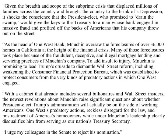 Congresswoman Maxine Waters is the first in Congress to address David Dayen’s Mnuchin story. Says it disqualifies him