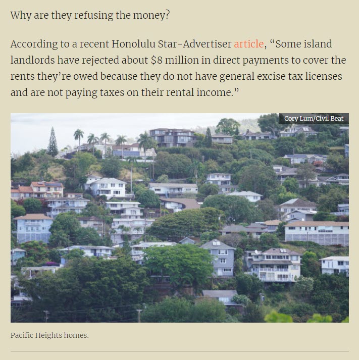 Even in Hawaii there are Landlords that are refusing COVID stimulus funds.