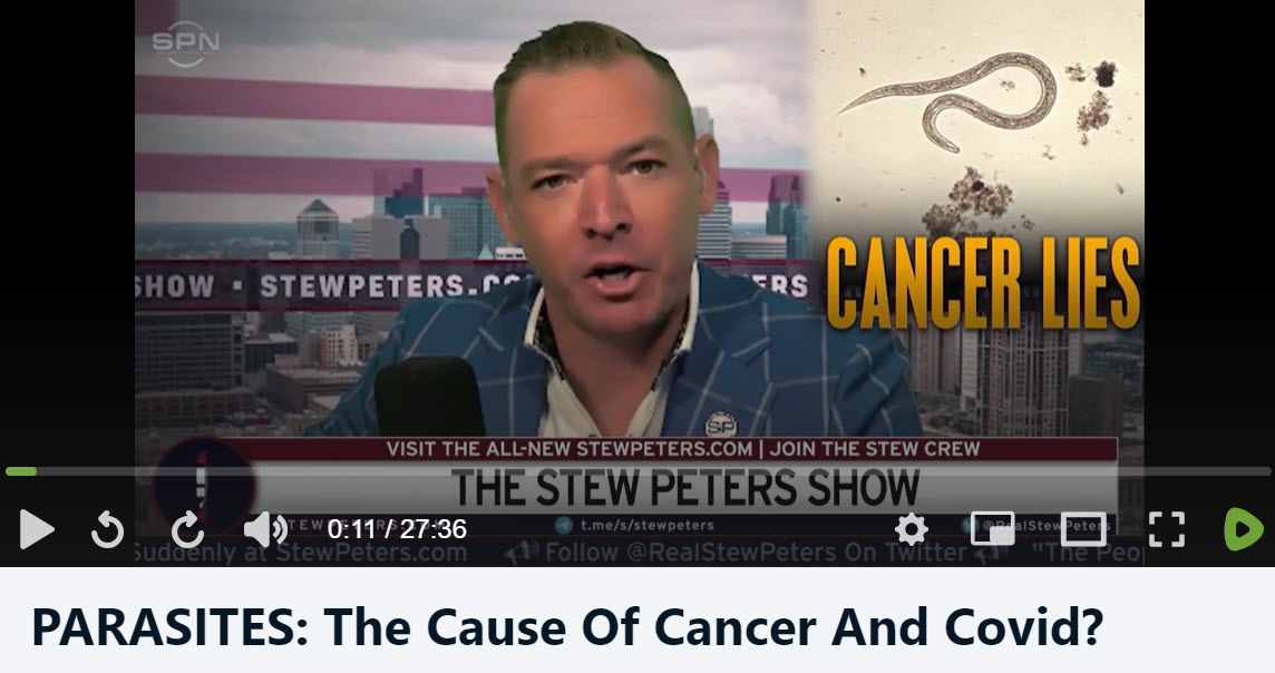 This week the Stew Peters Show posted another excellent video, “PARASITES: The Cause Of Cancer And Covid?“ where Karen Kingston and Dr. Lee Merritt discuss the invisible killer behind Covid and Cancer - PARASITES.
